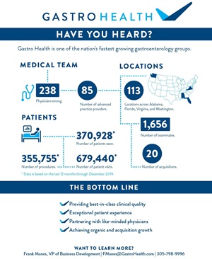 - Gastro Health and the practice finalize the partnership at closing.